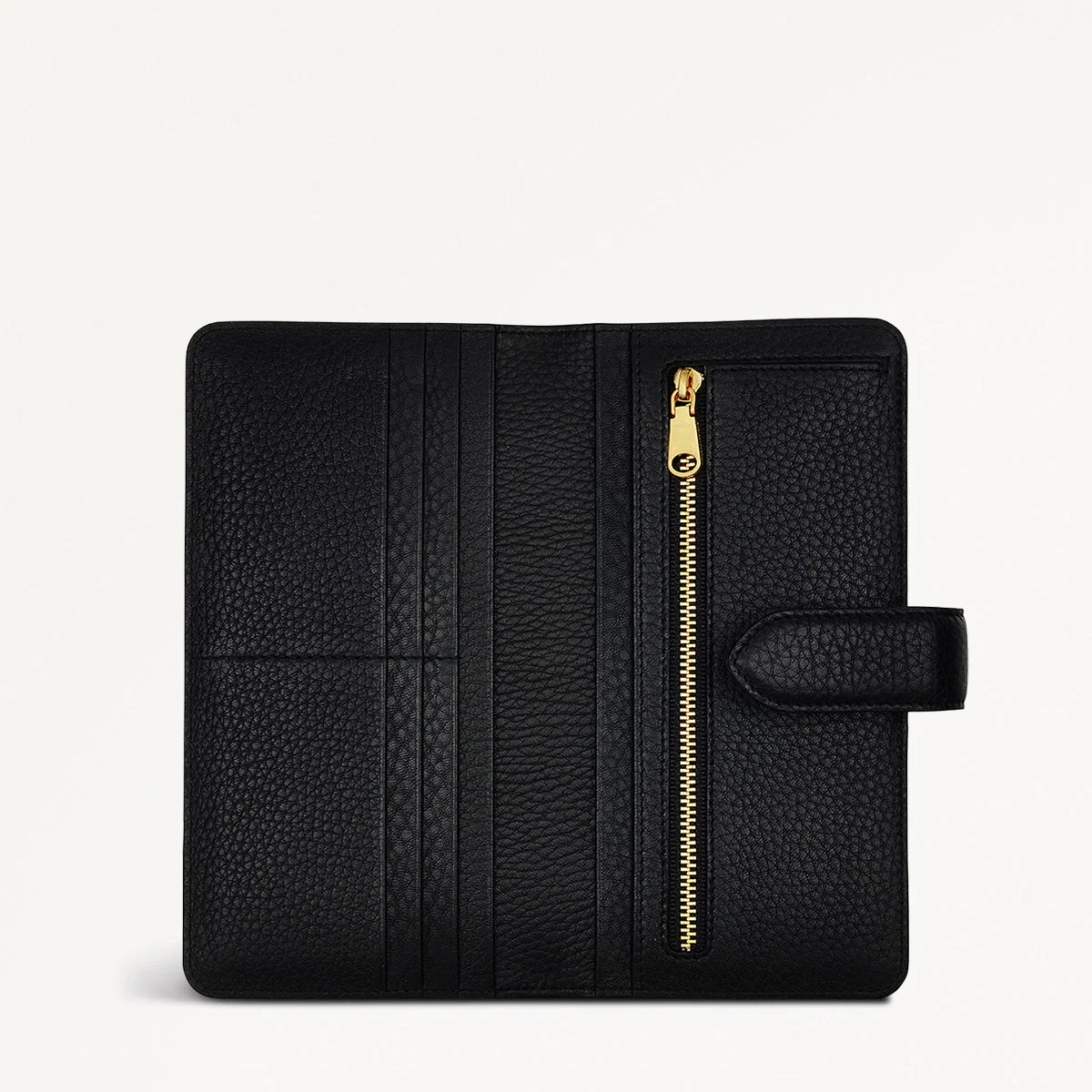 Fitting more than you expect. Our Hillgate large bifold wallet opens to reveal endlessly functional interiors. Designed with lots of room for your cards and cash, and a secure press stud that safely seals it all away.